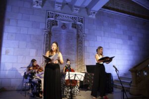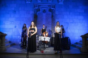 Para esta ocasión se eligieron a artistas de nuestra tierra, Cantabria: Cristina Galán, soprano, Aroa Gómez, soprano, Carla Moro, violín, Claudia Moro, violonchelo, María Ángeles López Alonso, pianista unidas para llevar a cabo un concierto especial en un lugar mágico como es el Vestíbulo de la Fundación Comillas.